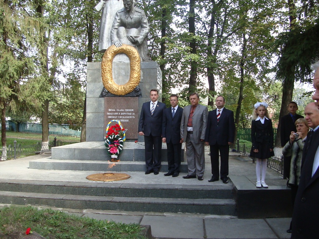 Квіти до Обеліску на братській могилі від району та міста