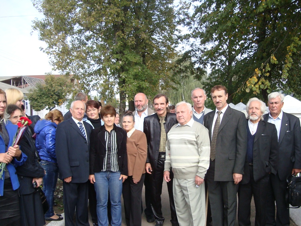 Міський Голова Г.В.Герасименко та Голова Ічнянської спілки "Чорнобиль" В.М.Кичай з землками на відкритті Памятного знаку